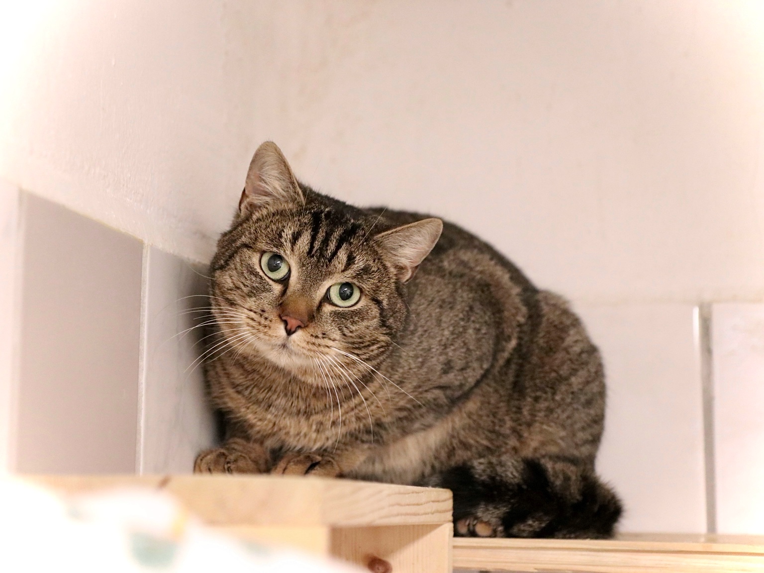 Mattheo kam als Fundtier zu uns und wartet nun auf ein neues zu Hause. Der getigerte Kater zeigte sich anfangs sehr verschüchtert. Nun fängt er an sich an die Menschen, die ihn täglich betreuen zu gewöhnen. Allerdings lässt er sich noch nicht anfassen. Für Mattheo wünschen wir uns ein zu Hause in einem ruhigen Umfeld mit geduldigen Menschen, die ihm Zeit geben anzukommen. Weiterhin sollte am Vertrauensaufbau gearbeitet werden. Kleine Kinder sollten daher nicht im neuen zu Hause leben.