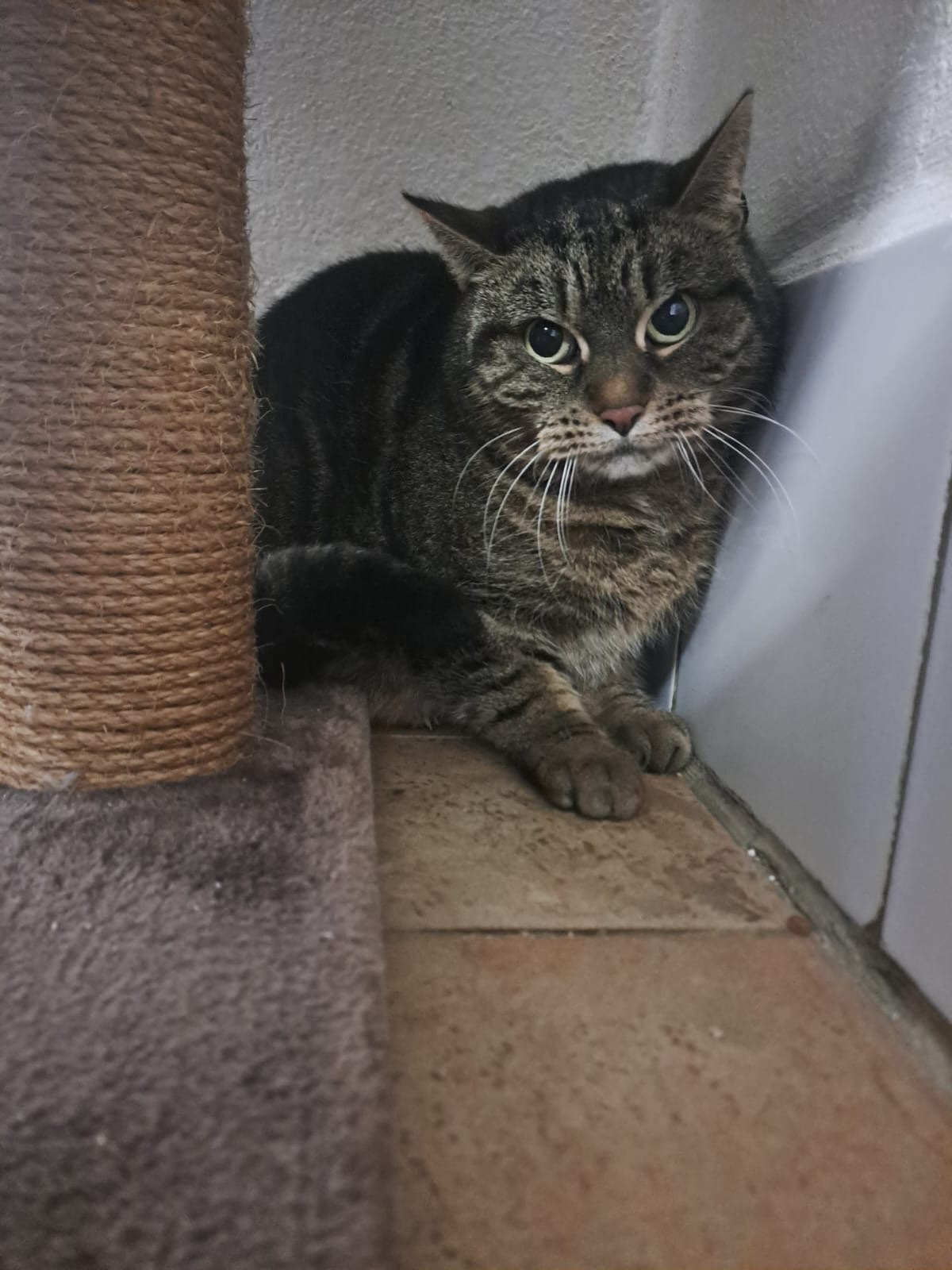 Die getigerte Katze Sonja kam als Einweisung mit Peter und Wolf in unser Tierheim und musste sich erst einmal an die neue Situation gewöhnen. Früher lebte sie zusammen mit den Katzen Peter und Wolf, wodurch sie das Zusammenleben mit anderen Katzen kennt.